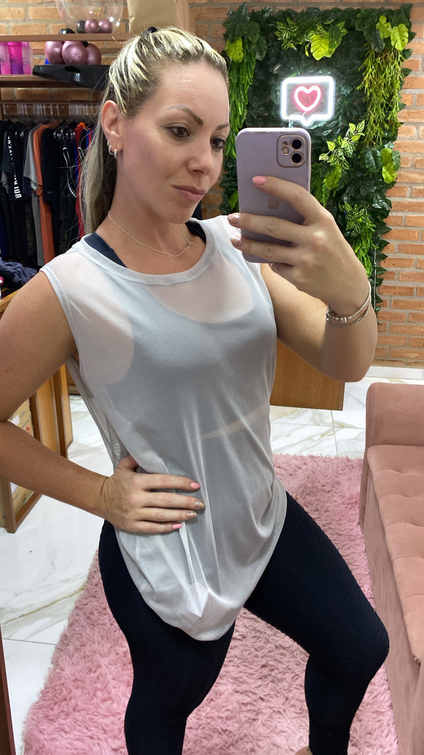 A Regata Tule com modelagem transparente é a escolha perfeita para quem deseja aliar estilo e sofisticação. Confeccionada em tecido leve e fluido, ela proporciona ótima respirabilidade, ideal para os dias mais quentes.